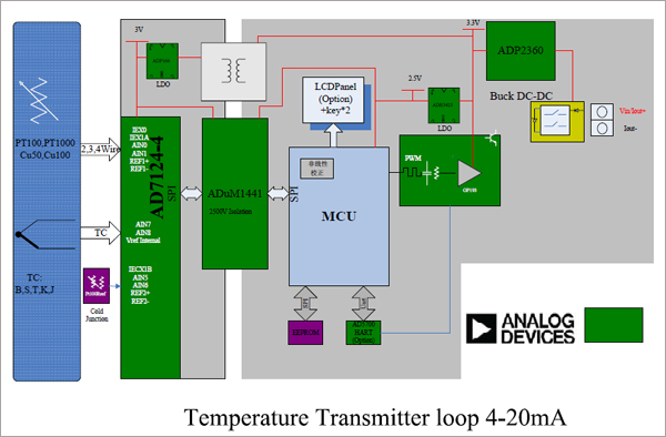 今天推薦給每個人的“智能溫度變送器參考設計”具有高精度、信號隔離、液晶顯示、HART協議支持、環路電源、接口保護等特點。該平臺主要基于ADI公司的具有自校準功能的多通道模數轉換器和愛普生公司的超低功耗16位單片機。